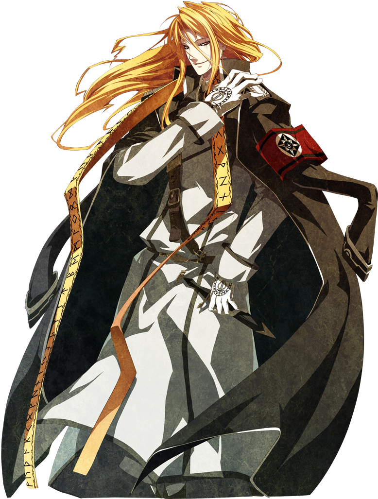 Reinhard Tristan Eugen Heydrich (ラインハルト・トリスタン・オイゲン・ハイドリヒ, Rainharuto Torisutan Oigen Haidorihi), also called by his Demon Name, Mephistopheles (メフィストフェレス, Mefisutoferesu), is the leader of the Longinus Dreizehn Orden and the main antagonist in Dies Irae. He occupies the seat I in the Obsidian Round Table.